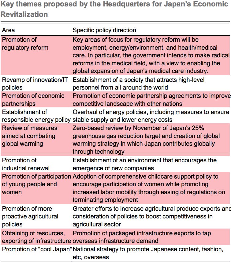 Since taking office, Abe has implemented a number of policies under the Abenomics banner, including: