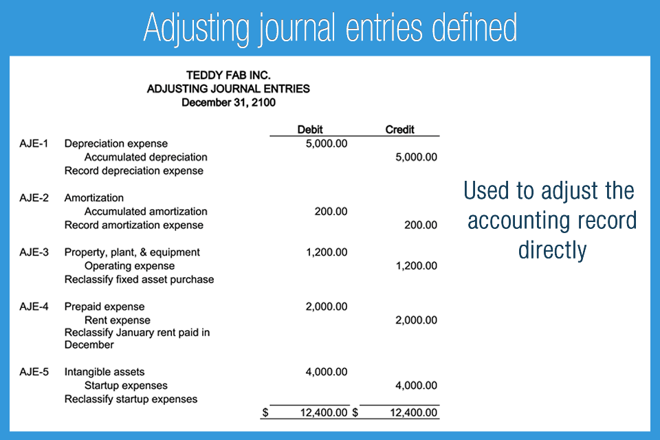 Adjusting journal entries are entries made at the end of an accounting period to ensure that the financial statements accurately reflect the transactions that have occurred during the period. Examples of adjusting journal entries include the reversal of accruals, the recognition of depreciation, and the recognition of revenue or expenses that were previously recorded in a different period. Adjusting journal entries are important to ensure that the financial statements accurately reflect the true financial status of the business. They can also help to reduce the amount of taxes owed, as some adjustments are tax deductible. Adjusting journal entries are an important part of any accounting system, and they should be reviewed regularly to ensure accuracy.