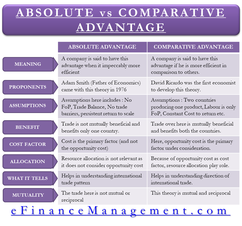 In economics, the term “absolute advantage” refers to the ability of a country or company to produce a good or service at a lower cost than its competitors. Absolute advantage is determined by factors such as land, labor, and technology.