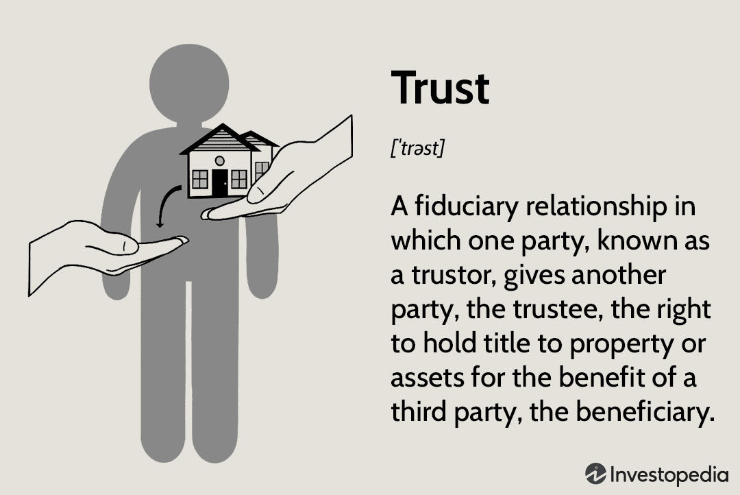 A trust is a legal arrangement in which one party, called a trustee, holds property or assets for the benefit of another party, called a beneficiary. Trusts can be used for a variety of purposes, including avoiding probate, minimizing taxes, and protecting assets from creditors.